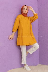 Lamelif Manşeti Biyeli Tunik Sarı