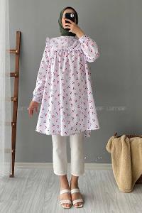 Modalamelif Hakim Yaka Kiraz Desenli Tunik Beyaz