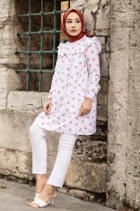 Lamelif Flores Fırfırlı Tunik Beyaz