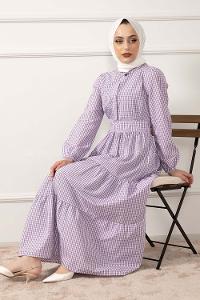 Modalamelif Hakim Yaka Pötikare Elbise Lila