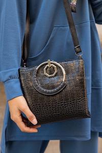 Modalamelif Halka Detaylı Trok Desen Çanta Siyah