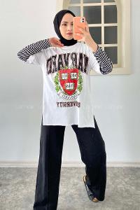 Modalamelif Harvard Baskılı Bisiklet Yaka T-Shirt Beyaz