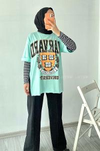 Modalamelif Harvard Baskılı Bisiklet Yaka T-Shirt Mint