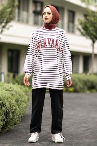 Modalamelif Harvard Yazı Baskılı Çizgi Şeritli İkili Takım Beyaz