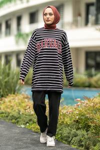 Modalamelif Harvard Yazı Baskılı Çizgi Şeritli İkili Takım Siyah