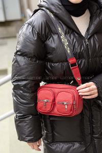 Lamelif Üç Bölmeli Omuz Çanta Kırmızı