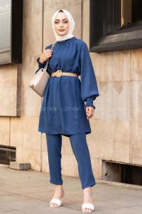 Modalamelif Hasır Kemerli Kolu Lastikli İkili Takım İndigo