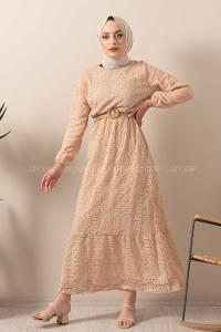 Lamelif Elica Tesettür Elbise Taş Rengi