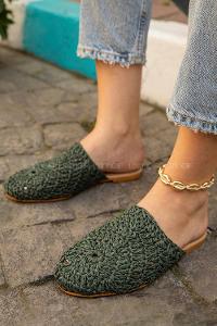 makrome el örgüsü hasır terlik.