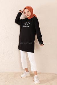 Lamelif İki iplikli Arma Detaylı Sweat Tunik Siyah