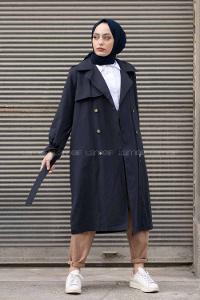 Lamelif Sakal Kumaş Atkılı Kaban Siyah