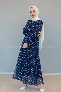 Modalamelif İçi Astarlı Puanlı Şifon Elbise Lacivert