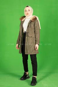 Modalamelif İçi Kürklü Kapşonlu Bondit Mont Haki