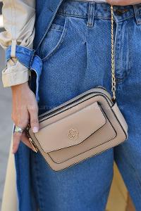 Modalamelif İki Bölemeli Miniadure Çapraz Çanta Vizonrengi