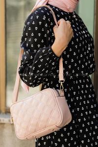 Lamelif Zincir Askılı Kapitone Desen Kadın Çanta Pudra