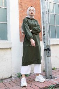 Lamelif Çiçekli İki İplik Tesettür Sweat Haki