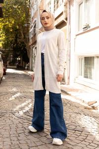 Lamelif Uzun Tesettür Hırka Bej