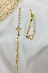 Lamelif Beyaz Kalp Nazar Boncuklu Zarif Bileklik