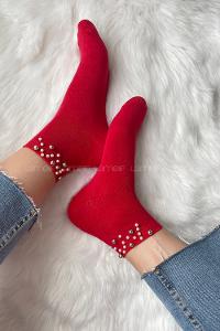 Modalamelif İncili Bambu Soket Çorap Kırmızı, renk ve beden seçenekleri kredi kartına taksit veya kapıda ödeme imkanıyla lamelif.com da