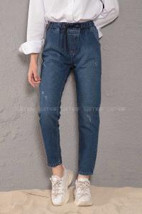 Modalamelif İp Kuşaklı Tırnaklı Mom Mavi