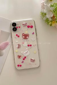 Lamelif ıPhone 13-14 Şeffaf Kiraz Kabartmalı Telefon Kılıfı