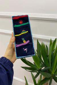 Modalamelif İşlemeli 4 lü Soket Çorap Lacivert