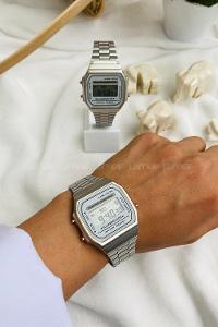 Lamelif Gümüş Metal Kordon Pudra Ekartman Kol Saati