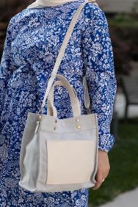 Lamelif Şeritli Shopper Kadın Omuz Çantası Gri