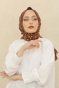 Modalamelif Kahve Rengi Taş Motifli Pamuk Vual Şal