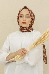 Modalamelif Kahve Renk Bulut Baskılı Pamuk Vual Şal