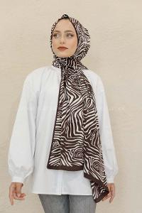 Modalamelif Kahve&Beyaz Baskılı Medine İpeği Şal Zen Desen