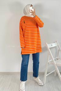 Modalamelif Kaktüs Nakışlı Çizgili Tunik Oranj