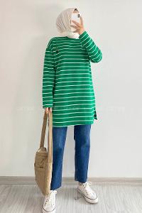 Modalamelif Kaktüs Nakışlı Çizgili Tunik Yeşil