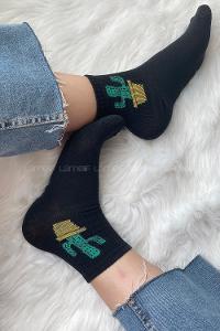 Modalamelif Kaktüs Nakışlı Soket Çorap Siyah