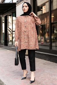 Modalamelif Kalp Desen Baskılı Gömlek Taba