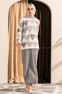 Modalamelif Kalp Desen Boncuk İşlemeli Etekli Takım Gri