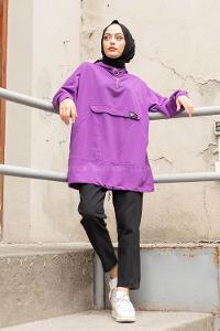 Modalamelif Kanguru Cep Armalı Sweatshirt Mor