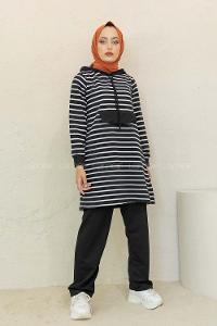Modalamelif Kanguru Cep Çizgili İkili Takım Siyah