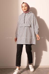Modalamelif Kanguru Cep Çizgili Tunik Siyah