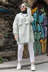 Modalamelif Kanguru Cep Çizgili Tunik Yeşil