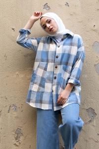 Modalamelif Kanguru Cep Ekose Gömlek Açık Mavi