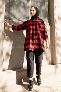 Modalamelif Kanguru Cep Ekose Gömlek Kırmızı Siyah