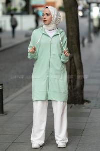 Modalamelif Kanguru Cep Fermuar Detaylı Kapüşonlu Hırka Su Yeşili