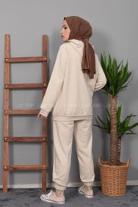 Modalamelif Kanguru Cep Kapşonlu İkili Takım Taş Rengi