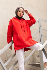Modalamelif Kanguru Cep Kapşonlu Sweatshirt Kırmızı
