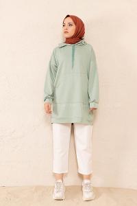 Modalamelif Kanguru Cep Kapşonlu Tunik Çağla Yeşili