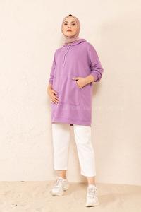Modalamelif Kanguru Cep Kapşonlu Tunik Lila