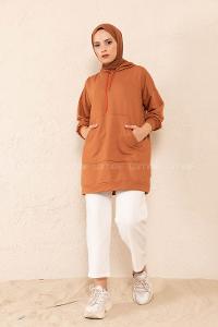 Modalamelif Kanguru Cep Kapşonlu Tunik Taba