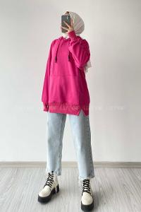 Modalamelif Kanguru Cep Kapüşon Detaylı Düz Vallyn Sweat Fuşya