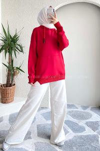 Modalamelif Kanguru Cep Kapüşon Detaylı Düz Vallyn Sweat Kırmızı